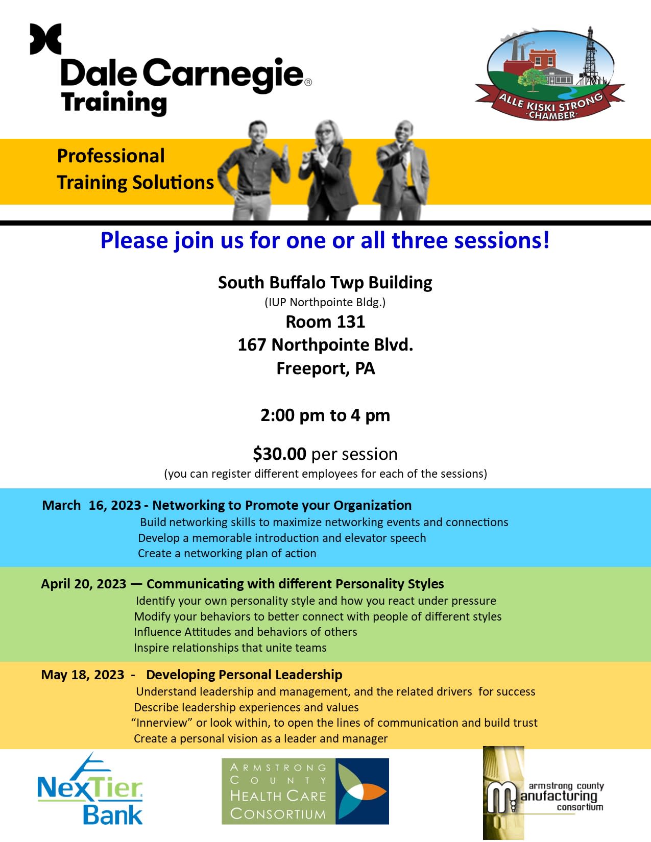 April 20, 2023 — Communicating with different Personality Styles Identify your own personality style and how you react under pressure Modify your behaviors to better connect with people of different styles Influence Attitudes and behaviors of others Inspire relationships that unite teams