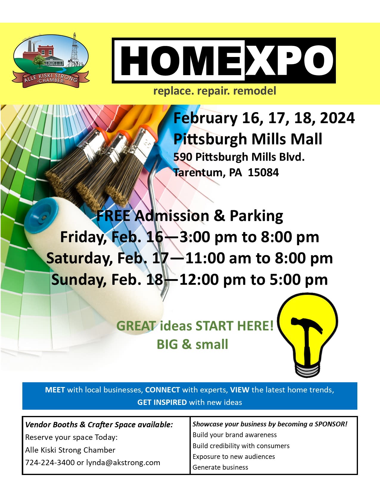 Alle Kiski Strong Chamber Home and Lifestyles show. MEET with local businesses, CONNECT with experts, VIEW the latest home trends, GET INSPIRED with new ideas. Great ideas, big and small, start here!